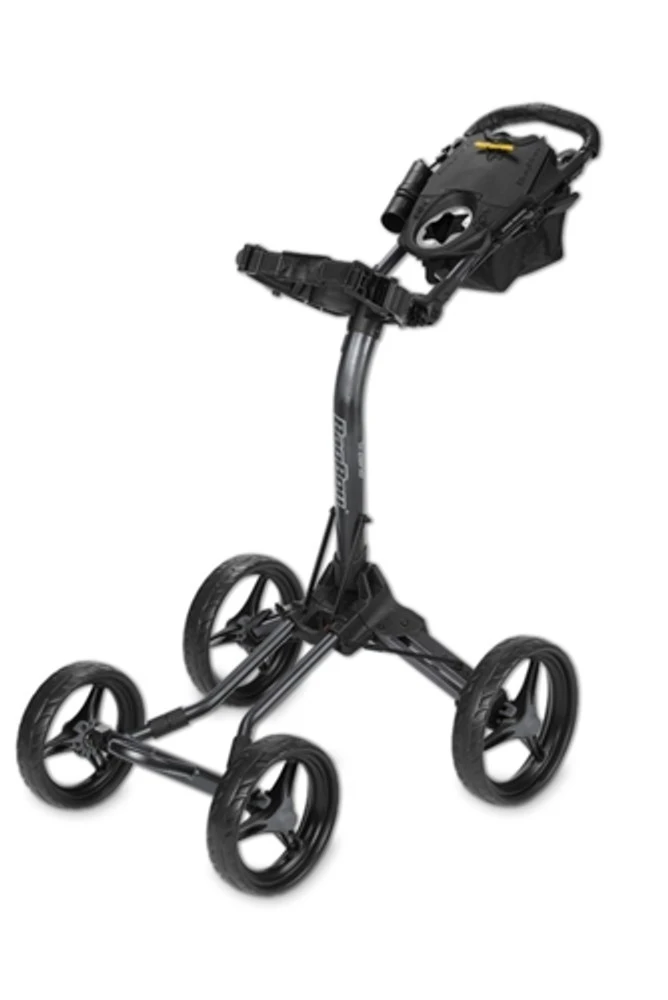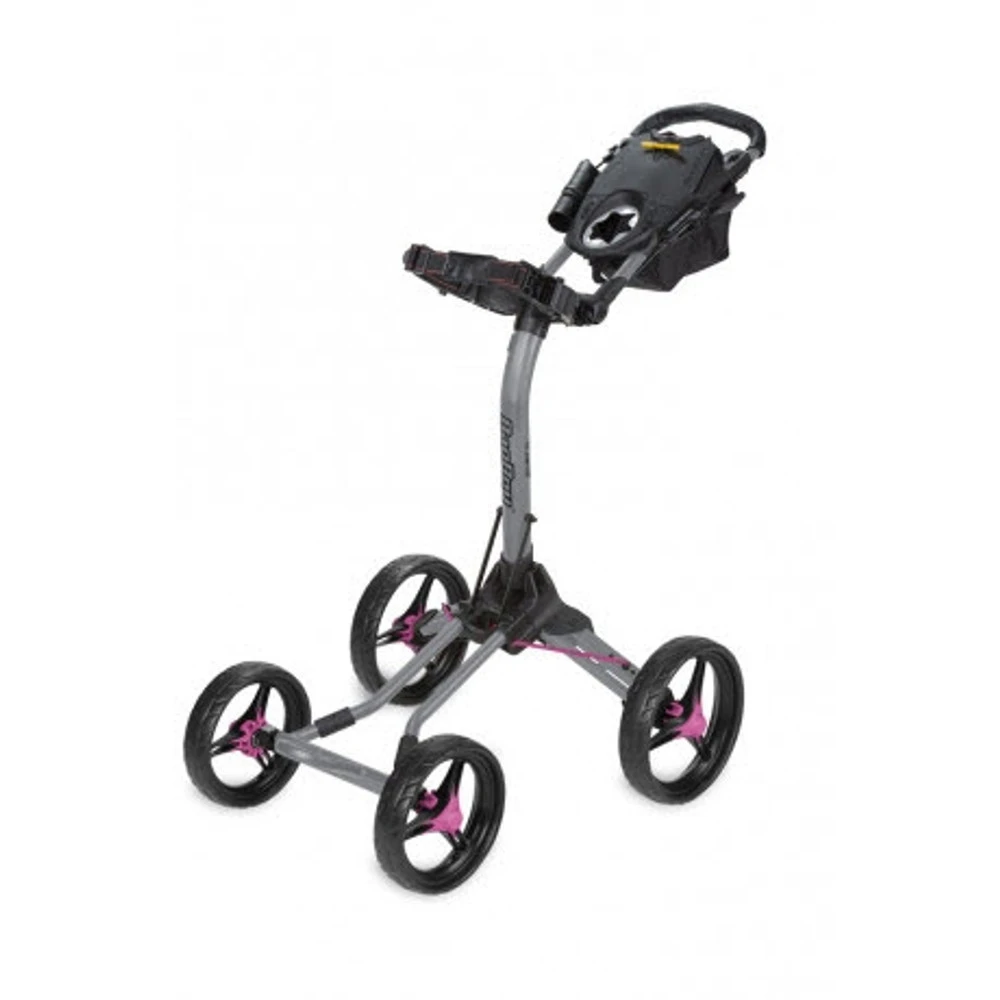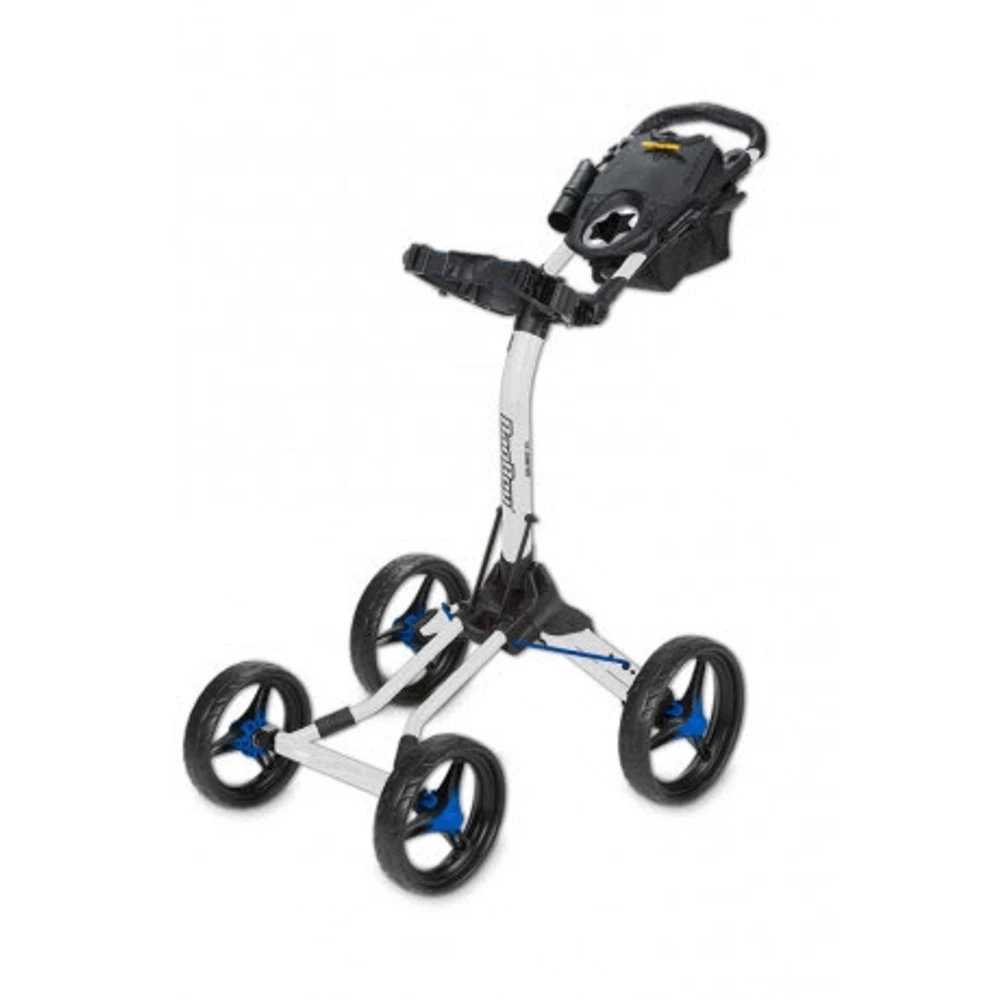 Golfers will admire the ease of mobility when using the Quad XL push cart, as the 9.5 inch front and 11.5 inch rear wheels glide effortlessly through the grass. The Quad XL includes a bag bracket that secures both stand and cart bags, as well as a simple two-step fold process for easy storage of the push cart. The Quad XL is designed to provide the best combination of key features.