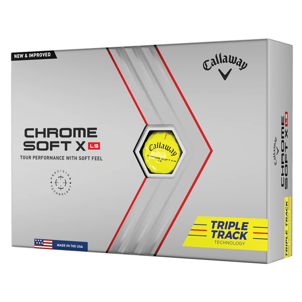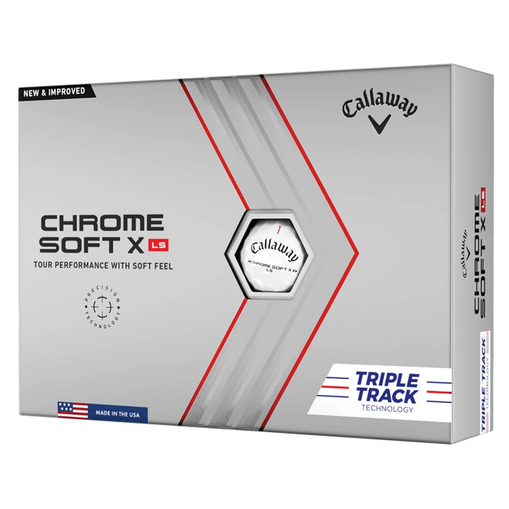 Chrome Soft is better for everyone, from amateurs to major winners. Now with our proprietary new Precision Technology, the Chrome Soft X LS Golf Ball is faster off the driver with a new cover for more greenside control, and alignment-enhancing Triple Track Technology.