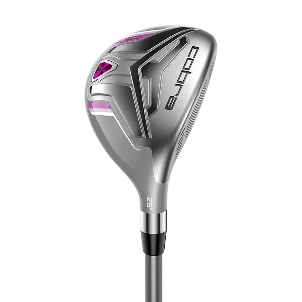 The women’s Cobra FLY-XL complete set includes a full bag of lightweight and forgiving clubs that deliver easy launch and distance for the beginner or aspiring golfer. The 13 piece set includes a driver, fairway woods, hybrid, mallet putter, and a cart bag.