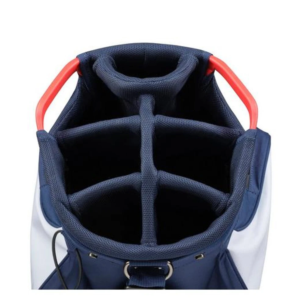 A brand new concept for Mizuno. The LW-C is here to break the reputation of cart bags as being bulky, heavy, and cluttered. Large pockets for apparel or bigger items, a cooler pocket for your hydration of choice, and a 7-way top cuff are just a few features that this lightweight cart bag still has, but in a smaller, more efficient design than your normal, bulky cart bag.