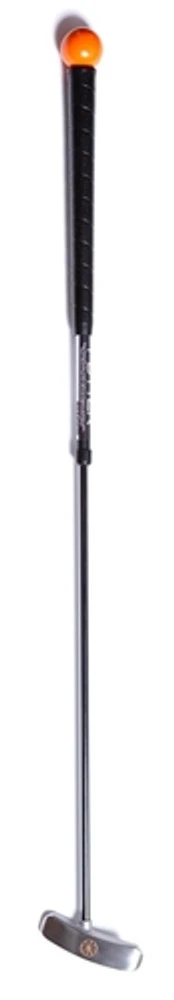 Great putters all have a consistent, repeating tempo to their stroke that stays the same on all lengths of putts. Some use a long, flowing stroke and others a shorter, quicker stroke. What all great putters do the same is maintain the same tempo and timing on every putt, and they make center contact with the ball rolling it end over end on their intended line. The Orange Whip Putter Blade is engineered to improve your tempo and improve center contact with the ball. When the putter swings and impacts the golf ball, the energy is transferred through the golf ball to the sweet spot to produce perfect, end over end roll. The weight of the putter head combined with the patented Orange Whip counterweight, flexible shaft system allows you to feel the swinging motion and balance of your putting arc. The uniquely designed, dual-sided spherical putter head can be used right or left-handed. Three key components make up the design of the Orange Whip Putter Blade: Dual-sided spherical putter head, a counter weight, and a flexible shaft. The dual-sided spherical putter head teaches center contact with the ball and provides instant feedback on sweet spot contact along your intended line. The counterweight balances the Orange Whip Putter Blade, stabilizing your stroke from start to finish. It’s essential in providing critical feedback on tempo, timing and balance in your stroke. The flexible shaft promotes tempo and rhythm in your putting stroke by creating the perfect pendulum-like motion. Making contact with the golf ball at the lowest point of the arc will deliver the most energy to the sweet spot and creates ideal end over end roll of the golf ball. The Orange Whip Putter Blade will help you develop a consistent and repeating, pure putting stroke. Feedback is instant. Make it part of your golf routine and you will hole more putts.