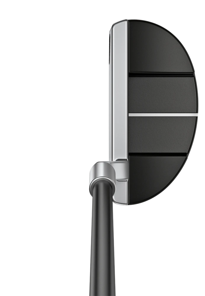 Forgiveness is high in the mid-mallets, aided by tungsten toe-heel weights to ensure stability, while the shallow milled face delivers a firmer feel and consistent ball speed with pleasing acoustics. A platinum topline contrasted against a black cavity with its longer alignment line to draw the focus forward, and the ball-width cavity floor helps frame the ball.