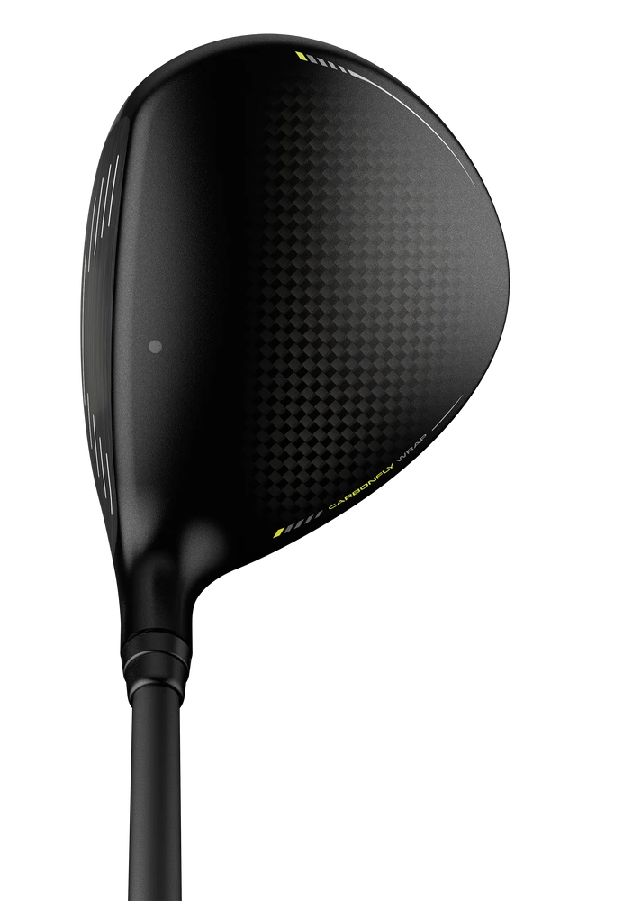 Carbonfly Wrap, an ultra-lightweight composite crown, wraps into the heel and toe sections of the skirt. Weight savings are reallocated to lower the CG and increase ball speed and MOI (forgiveness). The composite also plays a role in the pleasing sound.