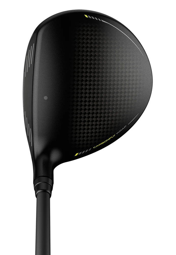 Carbonfly Wrap, an ultra-lightweight composite crown, wraps into the heel and toe sections of the skirt. Weight savings are reallocated to lower the CG and increase ball speed and MOI (forgiveness). The composite also plays a role in the pleasing sound.