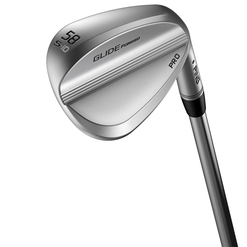 In consultation with PING pros, PING custom-engineered Glide Forged Pro for discerning shot-makers with a smaller, forged 8620 carbon steel head and precision-machined grooves for predictable, consistent results. A new face blast adds friction to increase spin and control across a newly expanded range of lofts and specialized sole grinds to fit your game.