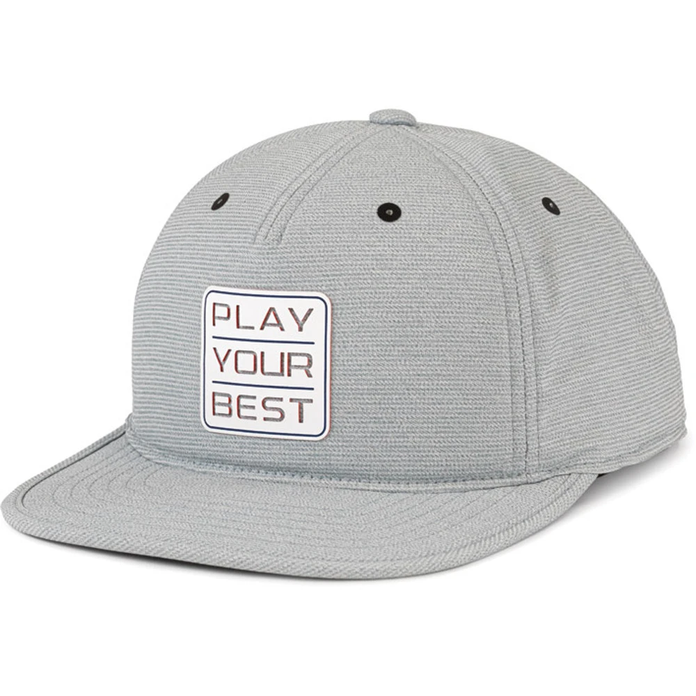 “Flex” being the operative word, this cap bends and folds up so small you can tuck it in your back pocket, your bag, anywhere. Pull it out again and it bounces right back into shape. That PYB logo is a double-layer heat transfer, and there’s a moisture-wicking SensorCool headband.