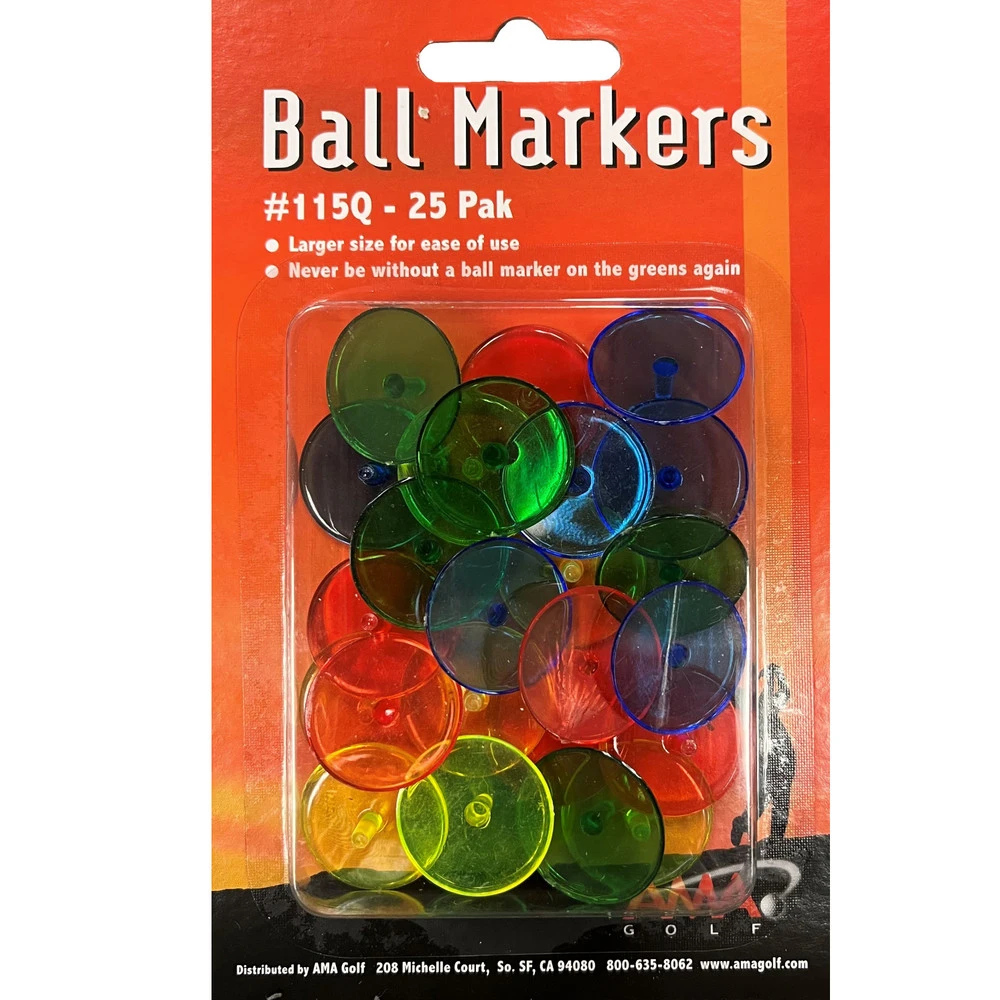 These easy to see colors, Plastic Ball Markers come in a pack of 25 assorted colors. Keep the pack in your golf bag and don’t worry about losing your ball marker and have plenty to lend to your golf buddies. They’ll stay securely in place with the plastic tab and stay out of the way with a thin smooth plastic top.