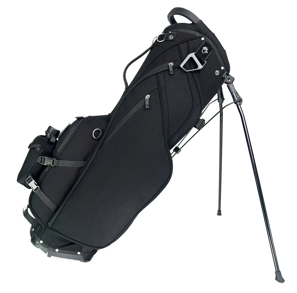 Exceptionally versatile whether you pack it or push it, the 4lb Covert Stand Bag is equipped with a feature set for either operation. When packing, the Subtle Patriot Strap automatically adjusts to custom fit any body type and continuously re-distributes the weight evenly to both shoulders. While strapped on, you’ll enjoy perfect access to your distance measuring device with a self-sealing security closure and an insulated hydration pouch. When pushing, the typical, impeding foot pedal is eliminated with the flex-foot base, providing a more stable fit on the cart. In either case, the hard shell, fleece line valuable pocket will protect your cell phone screen, electronics or other valuables from accidental damage. Don’t miss the hidden, padded “carry” pocket that allows extra protection for more private items and if 9 pockets aren’t enough, feel free to add storage through use of the Molle System.